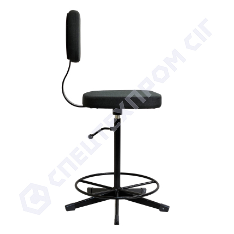 Стул промышленный СТС-1.2к с мягким сиденьем и спинкой, подставкой для ног предназначен для комфортной работы комплектовщиков, упаковщиков, сборщиков и других работников на различных участках промышленных предприятий.